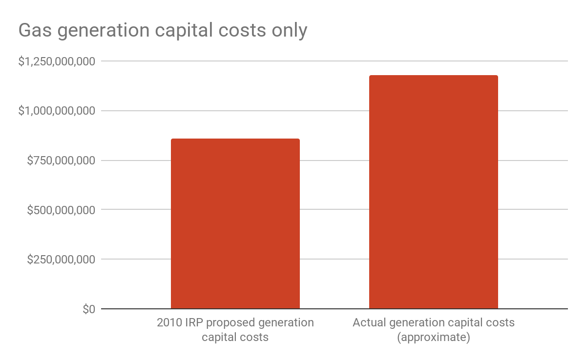 Gas plants were the one thing we spent more on than the 2010 plan suggested. They cost over a billion in total, but were small enough to be financed by individual utilities. Each gas-dependent utility bought or upgraded its own.